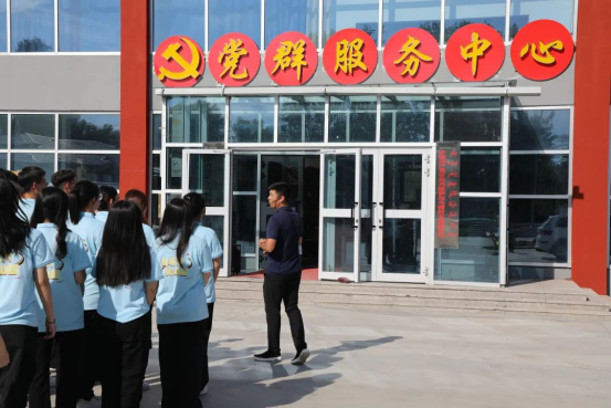 在驻村干部江多斯·阿森的深情讲解下,实践团师生深入了解了萨尔乌楞村的村史沿革。各种便民设施映入眼帘,这些设施不仅为村民的生活带来了便利,更充分展现出萨尔乌楞村发展的民生温度,而这也正是对总书记回信精神的生动践行。