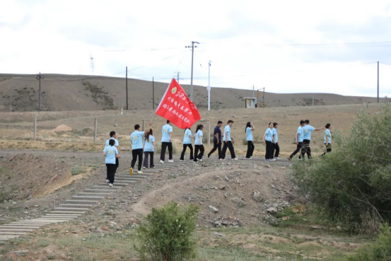 实践团队师生在江多斯·阿森带领下,沿萨尔乌楞村中哈边境巡逻道开展徒步实践,踩在戍边员日复一日巡逻的脚印上,才真切感受到何为“平凡中的伟大”。