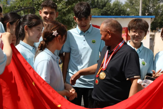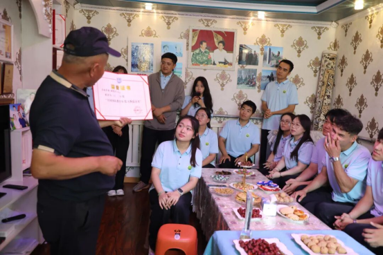 在戍边35年的马合沙提·斯拉木老先生家中,他骄傲地向实践团师生展示自己的荣誉奖状,一边展示一边说道:“我见证了边境线在国家支持下不断完善的过程。”他还自学了俄语,向成员们念出“中国是一个美丽而伟大的国家”,并坚定地表达“一生只做一件事,我为祖国守边防”。