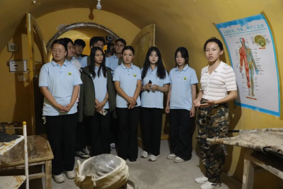 下午,实践团师生走访186团龙珠山地道。实地参观,沉浸式体验。蜿蜒曲折的地道内,触摸斑驳的墙壁,聆听昔日戍边故事,深刻体悟兵团精神与家国情怀。