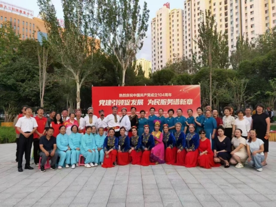 6月30日晚,建党节来临前夕,文化广场上“党建引领促发展,为民服务谱新章”的横幅迎风舒展。“丝路暖阳”实践团成员身着红马甲志愿服务,社区干部正蹲身调试音响:“再大两格,让后排马大爷听清。”维吾尔族舞蹈响起,艾爷爷前倾身体,笑意漾在脸上;《没有共产党就没有新中国》旋律起,周奶奶脊背挺直,轻声哼唱字字有力。老人们的神情里,满是对党的赤诚。收拾场地时,社区干部念叨“下次舞台搭高30公分”——这场晚会的细节里,藏着对老人的专属温柔。
