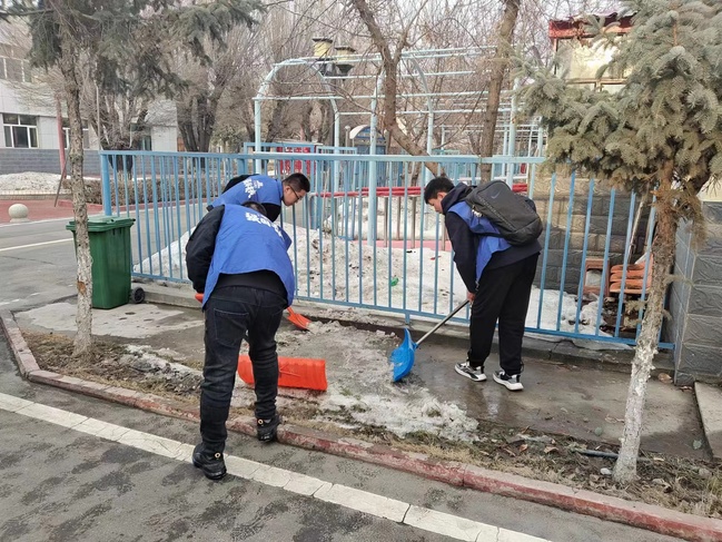 在第一离职干部休养所内,我校青年志愿者们围绕“美丽新疆·青春行动”整体部署和自治区生态文明建设目标任务,开展扫雪除冰、清扫散落枝叶等活动,以实际行动服务社区离休老人,发扬孝老敬老的优秀传统美德,弘扬雷锋精神。