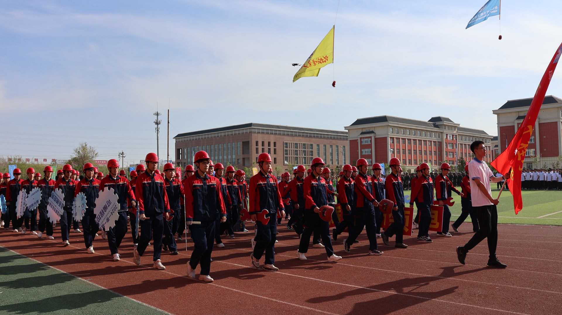 以运动之名,赴青春之约。2025年4月27日,新疆石河子职业技术学院开展2025年体育文化节暨第八届田径运动会,师市教育局党委书记、局长黄博,师市教育局党委委员、副局长黄兴,师市文化体育广播电视和旅游局党组成员、副局长晏晶,来自兵地各院校领导,新疆石河子职业技术学院领导、全体师生齐聚绿茵场,共同见证这场体育与文化的盛会。