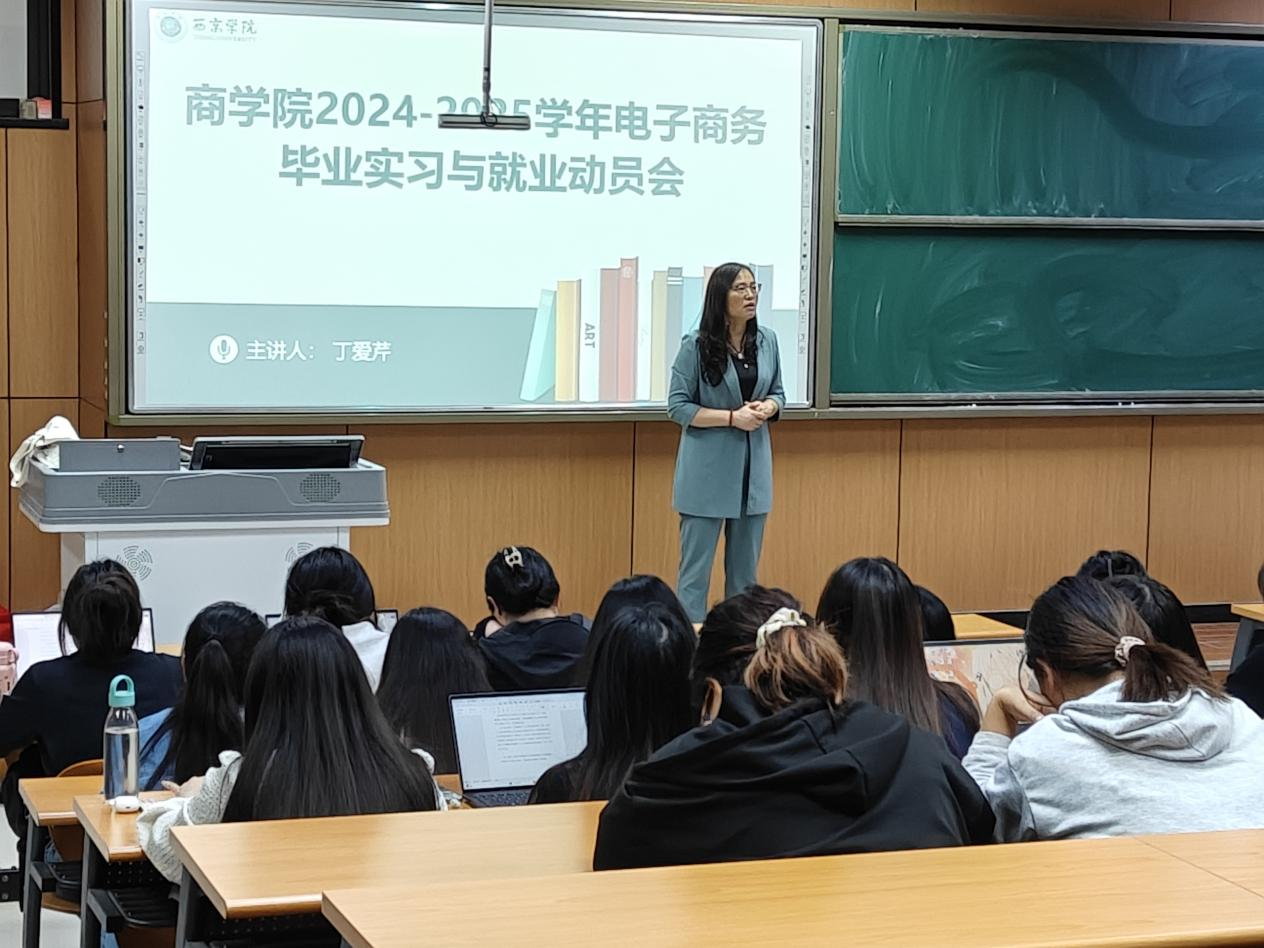为提升毕业实习的育人成效,数字商务系组建10人教师指导团队,构建 “三阶护航 ”体系:岗前赋能,学院组织开展68人次集中面试与131人参加的毕业实习动员大会,强化学生实习安全意识和职业规范认知,完成职业认知重塑;过程督导,实施 “日日志 + 周汇报 + 月评估” 跟踪,开展 160 + 次线上沟通、10 余次实地走访,150余次电话反馈;成果孵化,建立 “实习 - 考核 - 就业” 直通车,35 名集中实习生全员通过考核,15 人获评优秀,12 人斩获企业 offer。