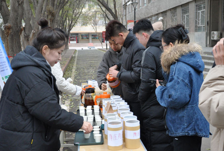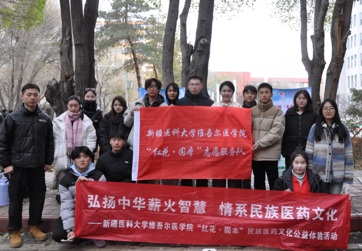 11月22日,维吾尔医学院“红花·固本”志愿实践队联合院级专业兴趣小组与新疆师范大学音乐学院在新疆师范大学校园内共同开展了“弘扬中华薪火智慧·情系民族医药文化”进校园公益体验活动,活动持续2个小时,服务300余人,公益发放体验药茶500余杯。通过“院校联手”促进了中华传统医草药知识的传播,提升了青年学子对中医文化、民族医药文化的兴趣,现场近600人次参与了此次民族医药文化的“体验之旅”。