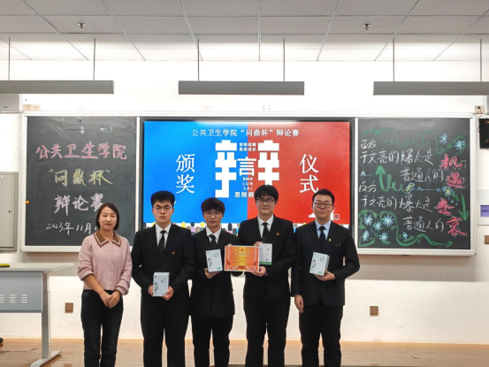 10月28日至11月19日,公共卫生学院举办了以“辩世事,论时事,实事求是”为主题的“问鼎杯”辩论赛。本次辩论赛共有8组选手,共有八强赛、半决赛、季军赛、总决赛四轮比赛,展开了七个话题的辩论。最终,预防医学2021-3班代表队获得冠军、预防医学2020-02班代表队获得亚军、预防医学2022-2班代表队获得季军。比赛中同学们以饱满的热情,宏辞论道,以辩会友,现场激情澎湃,气氛热烈,展现了当代大学生昂扬向上的精神面貌。