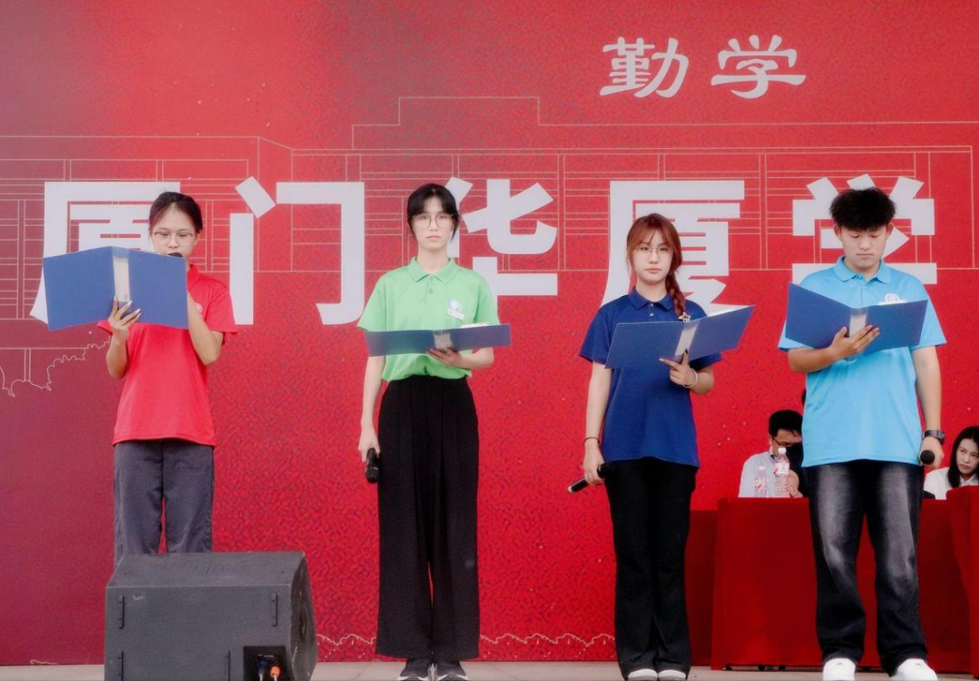 “以青春之名,承先辈之志;以华厦为证,续强国之章!”来自四个学院的新生代表共同带来《华厦新生诵:青春笃行承使命》。他们语调铿锵,分享初入校园的新鲜与期待,更许下承诺:当以课堂为基筑牢学识根基,以科创为翼探索未知边界,以担当为帆紧跟时代浪潮,让青春的每一步都踏在报国的征途上!