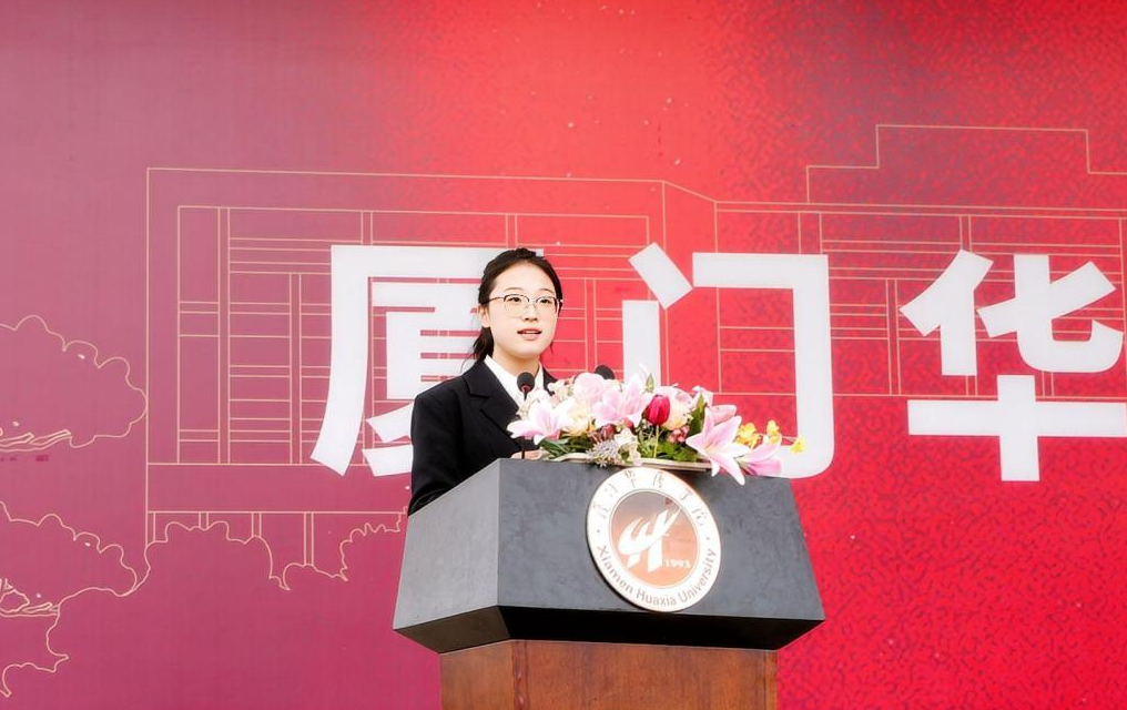 在校生代表、第二十八届学生会执行主席、商务与管理学院 2023级金融学4班王羽茜同学分享了自己在华厦的成长故事:“从迷茫到坚定,是探索与实践让我找准方向。”她鼓励新同学珍惜大学时光,以榜样为镜,用奋斗书写青春答卷。