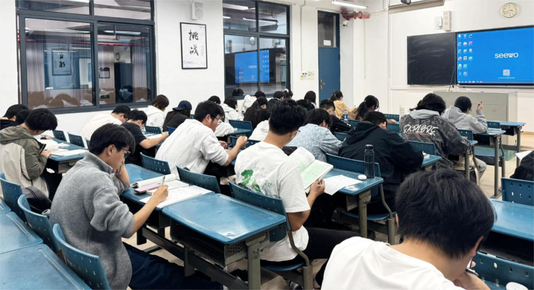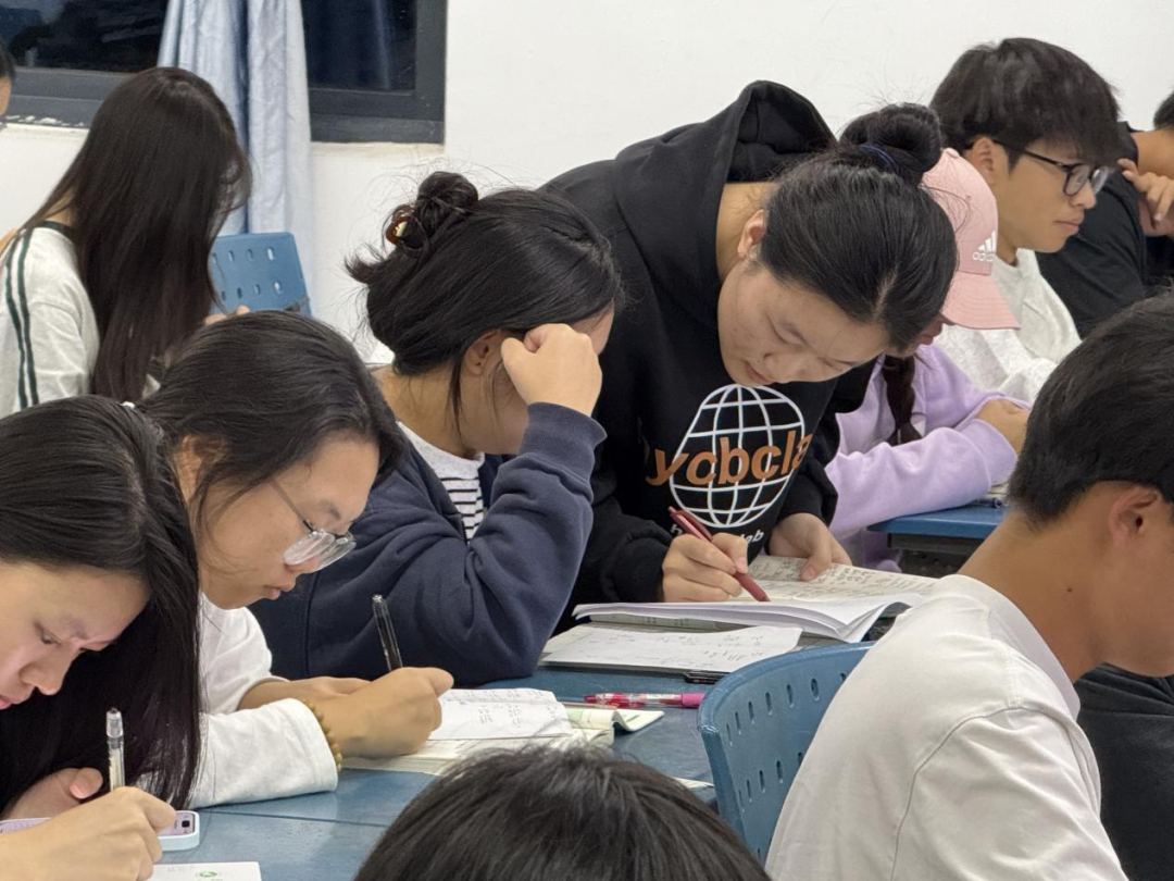 赋能班以“夯实基础、强化能力、互助共进”为核心理念,将学风建设深度融入教学全流程。线下课堂采用板书推导与PPT演示相结合的教学方式,积极鼓励学生主动提问、分组研讨,有效激发学习内驱力;线上平台则打破时空限制,使自主学习成为常态。“教师引领方向、学长贴心帮扶、学生互助成长”的协同育人模式,不仅提升了知识掌握的实效性,更在朝夕相处中培育了学生勤奋进取的学习态度,推动“比学赶超”的优良学风蔚然成风。通过将知识传授与集体建设相结合的育人实践,学生在学术提升中增强了归属感,在互助协作中凝聚了向心力。