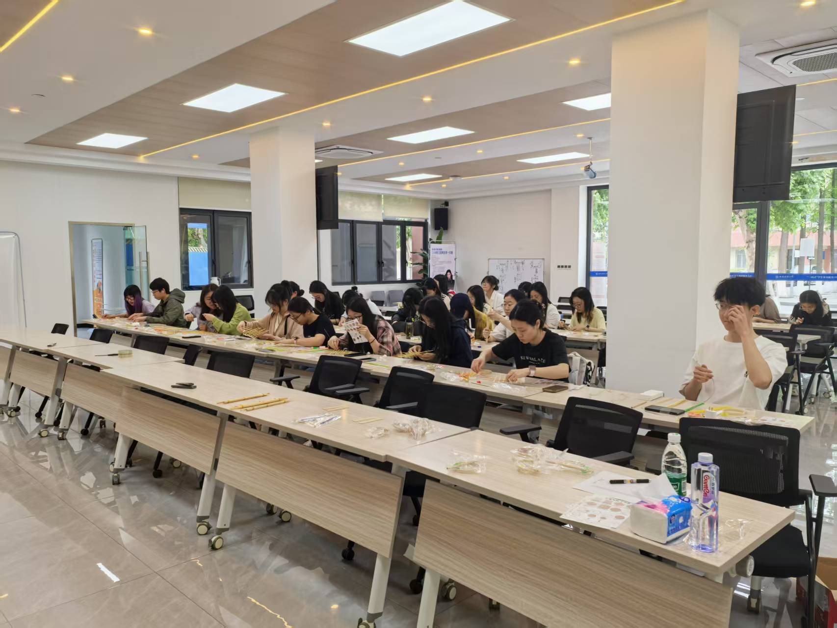 聚焦“以劳育心”,以践行好新时代党的教育方针、培养五育并举时代新人为己任,开展劳动技能专项活动。4月25日,学院特邀非遗竹编手艺人开展“竹韵摇风,铃音入梦”手作活动,让传统文化走进校园。学生们以竹为媒,以编为桥,解锁传统技艺,通过挑、压、弹、插等手法制作专属风铃。