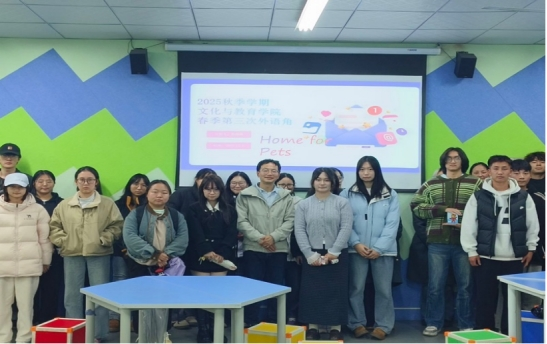 为给学生提供语言交流实践平台,提升外语口语能力,增进对外语文化的了解,文化与教育学院E-star Club英语社携手绵阳校区第二学生社区,于11月5日在三教声乐室顺利开展了以“Home For Pets ”为主题的2025年秋季学期第九周外语角活动。此次活动由张芹祎同学主持,邀请到文化与教育学院教师郭家宏、蓝金燕担任现场嘉宾。