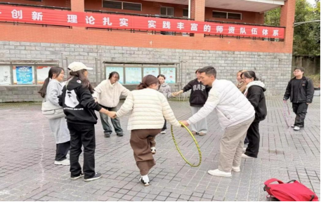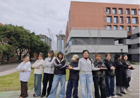 随后,各参赛队伍有序转场至第三教学楼粉色站,开展“一圈到底”团队项目。十名队员手拉手组成人链,在不松开手的前提下让呼啦圈依次穿过每位队员,这一项目既考验身体灵活性,更彰显团队默契。在四、五教绿色站举行的“齐心协力摆造型”环节中,各队伍充分发挥创意,在规定时间内完成了一系列富有创意的团队造型,现场欢声笑语不断,将活动氛围推向了一个小高潮。