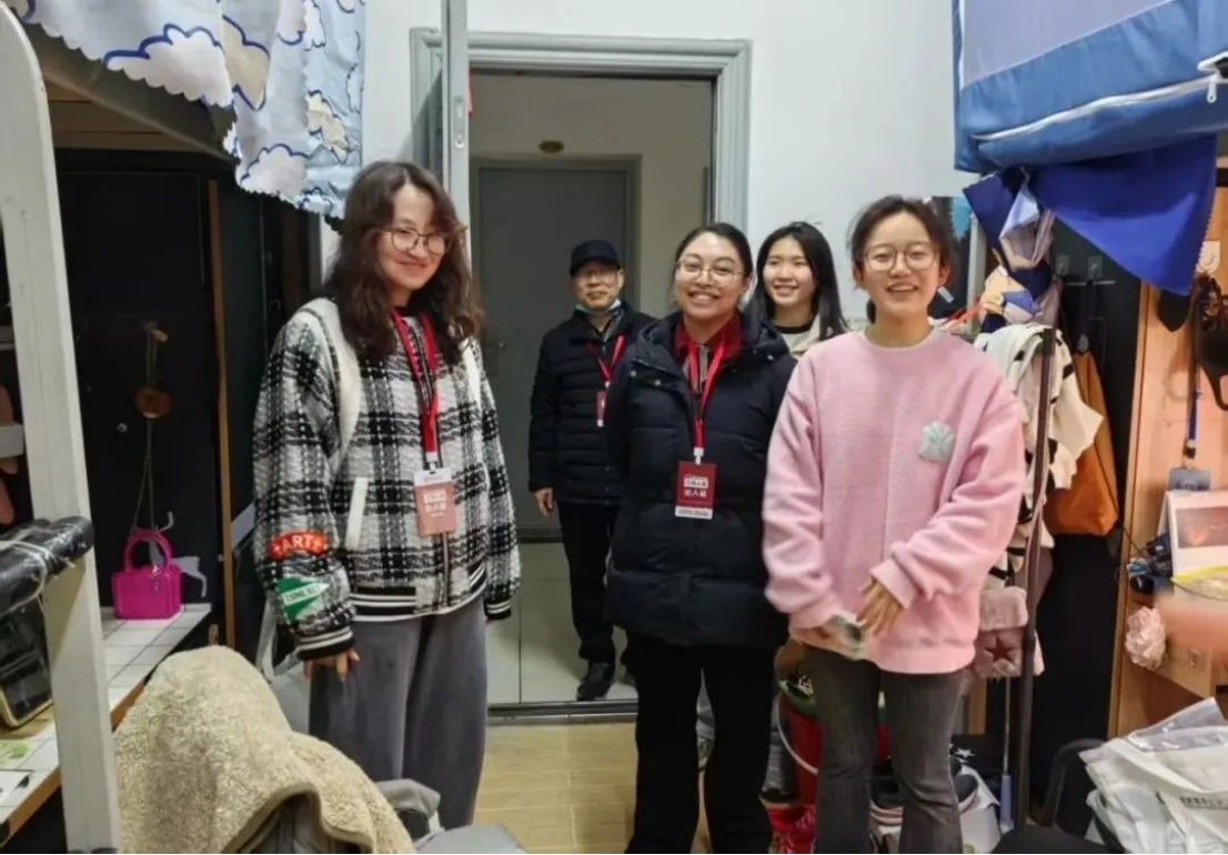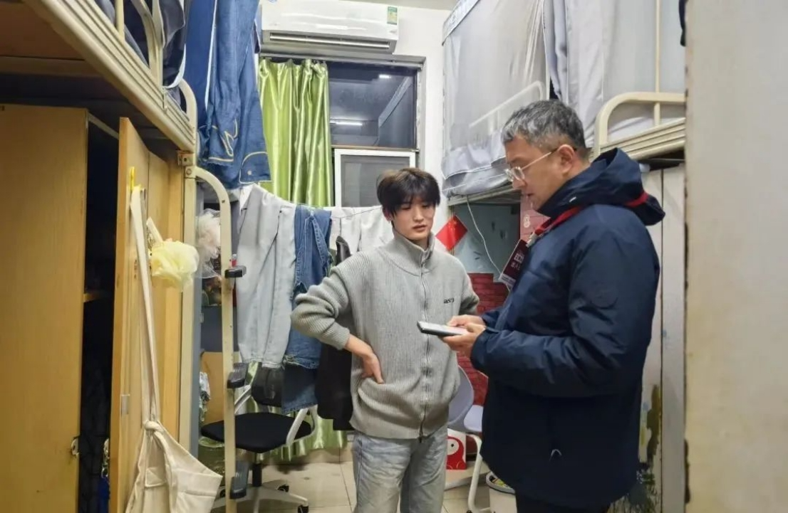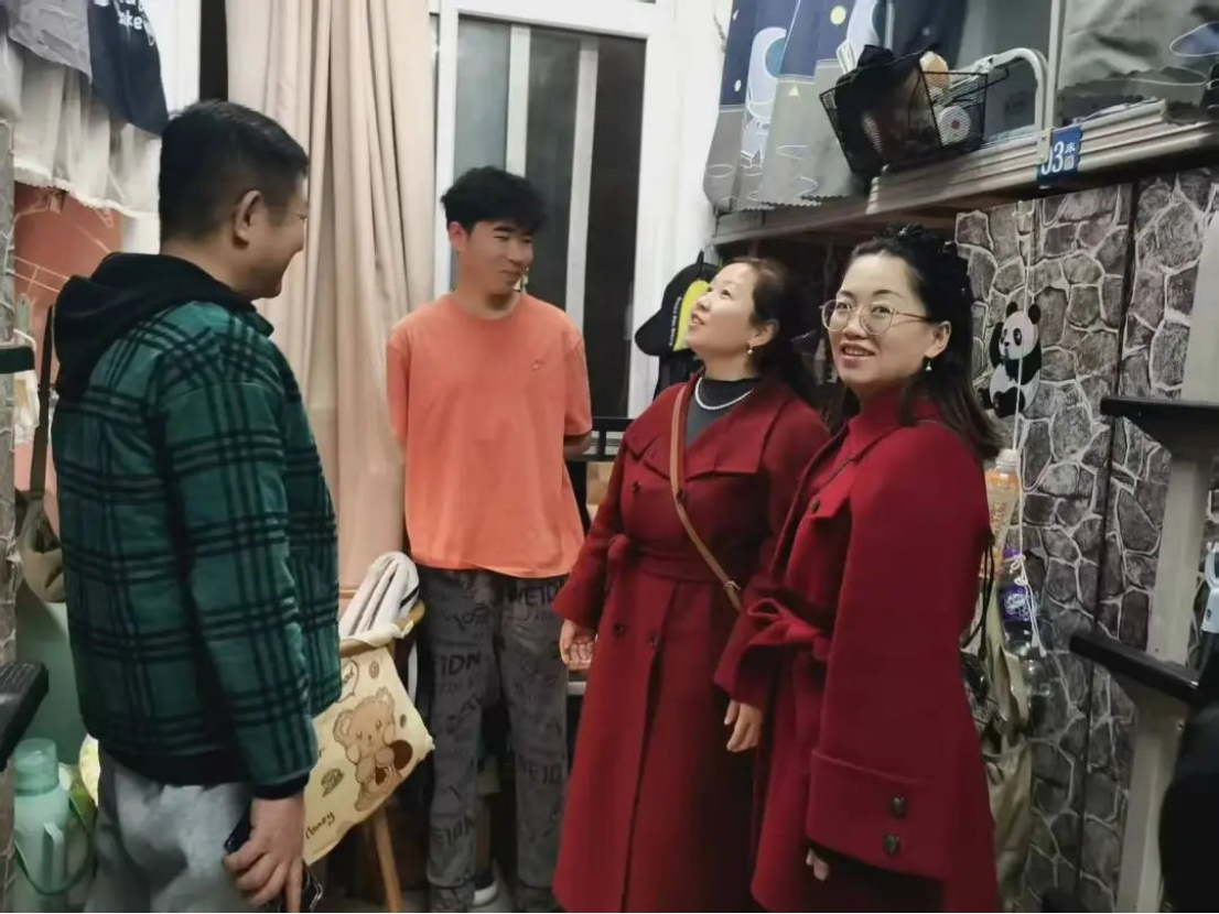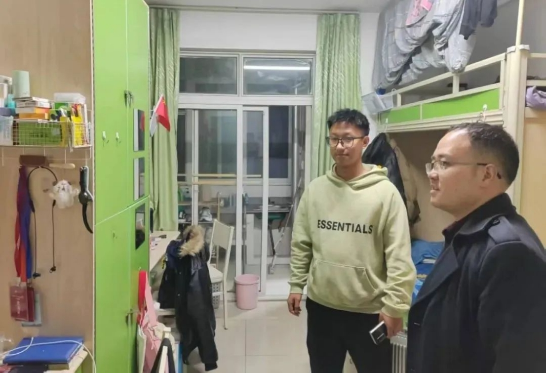学工队伍在走访中针对性开展学业指导、安全教育,积极回应学生诉求,及时帮助学生解决遇到的困难和问题,为同学们学习生活提供强有力的保障。