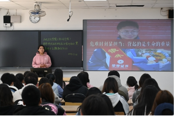 活动上,首先由学校铸牢中华民族共同体意识青年宣讲团成员泽王卓嘎以《学雷锋日,做追“锋”人》为题展开宣讲,她结合雷锋事迹与当代青年责任,号召同学们将个人理想融入国家发展大局,以行动诠释“心有所信,方能远行”的深刻内涵,将雷锋精神内化于心、外化于行。随后,学校铸牢中华民族共同体意识青年宣讲团成员张宝婵以《以青春之名,续写新时代雷锋故事》为主题,围绕“信仰扎根祖国大地”“奋斗书写青春华章”等方面,激励青年学子做“永不熄灭的火焰”,让雷锋精神在新时代绽放光芒。