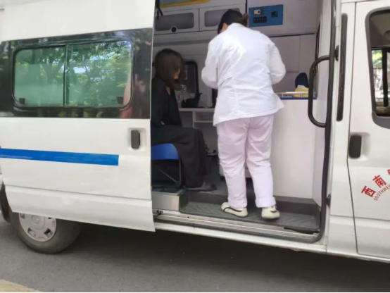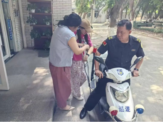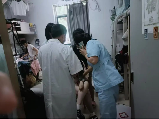 ▲为学生提供拐杖,并联系保卫处送至校医院就医