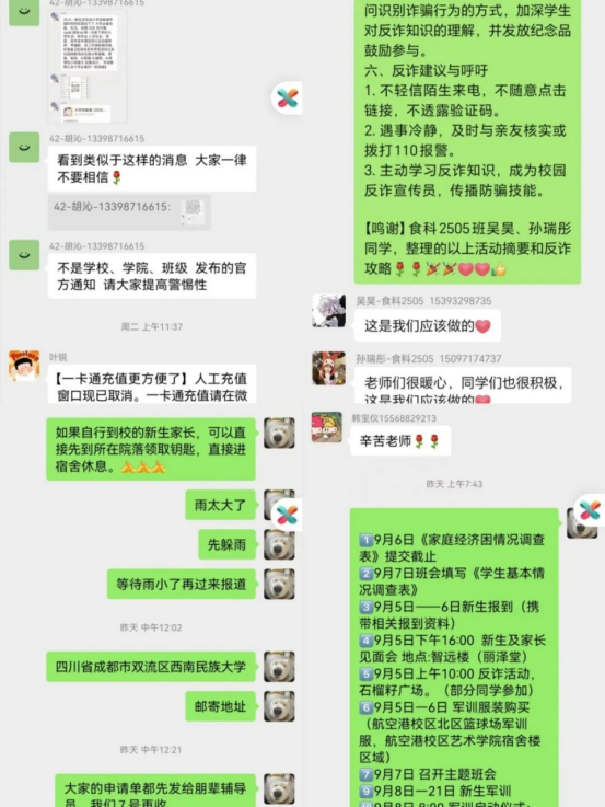 怀着激动与憧憬,我正式成为了西南民族大学的一员。报到以来,校园优美的环境、完善的设施以及学长学姐们热情周到的指引,都让我倍感温暖,对未来的学习生活充满了期待。特别要感谢我们的班导师卢老师,从报到注册到安排住宿,始终耐心细致、关怀备至,为我们顺利融入新环境付出了许多心血。卢老师的亲切笑容和鼓励话语,瞬间消除了我们的陌生与不安。非常荣幸能成为您的学生,未来还请您多多指教!