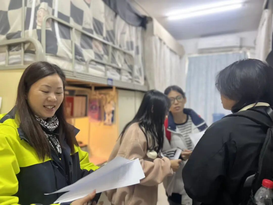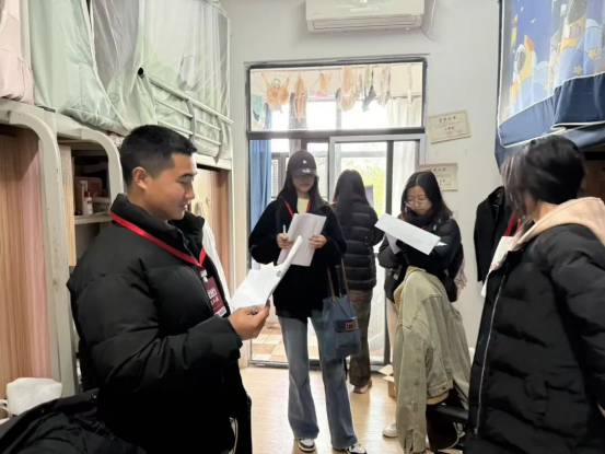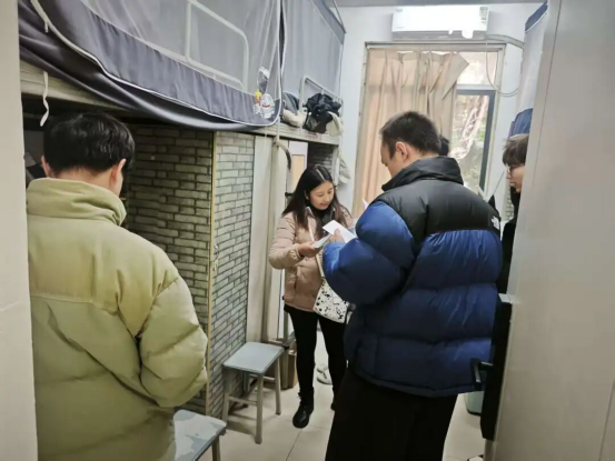 聚焦消防安全,重点清查违规电器使用、堵塞消防通道、宠物饲养等突出问题,对发现的安全隐患立即记录并督促整改。强化行为引导,在走访中,检查人员结合近期案例,面对面开展反诈防骗、公寓禁烟等宣传教育,引导学生自觉遵守社区管理规定,提升安全防范与自我保护能力。