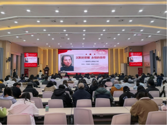 12月9日,学校在航空港校区丽泽堂举办“红枫似火照丹心——《沉默的荣耀》原型朱枫烈士事迹报告会”,朱枫烈士孙女朱容瑢老师受邀作专题报告。校党委副书记、副校长麦贤敏出席,学生工作领导小组成员单位负责同志,各学院分管学生工作副书记,辅导员、班导师代表及学院学生代表参加活动。