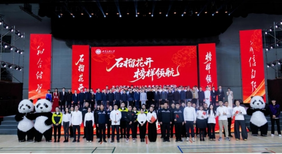 12月12日,学校在航空港校区举行2025年“石榴花开 榜样领航”优秀学生表彰晚会。校党委副书记、校长王永强,校党委副书记、副校长麦贤敏,校党委常委、副校长乔俊杰,校党委常委、总会计师张智勇,副校长周洪波,校领导丁克毅、王伟,校党委常委余勤高、罗萍以及沙马拉毅、王永正等老领导,四川电视台、中国新闻网、中国民用航空飞行学院、成都中医药大学、四川音乐学院、西藏航空、西航港社区等单位负责同志,学校各部门各单位负责人、师生代表、家长代表3000余人共赴盛会。新华网全程线上直播。