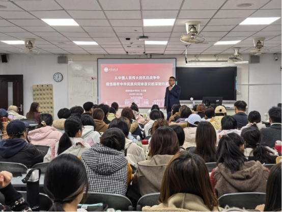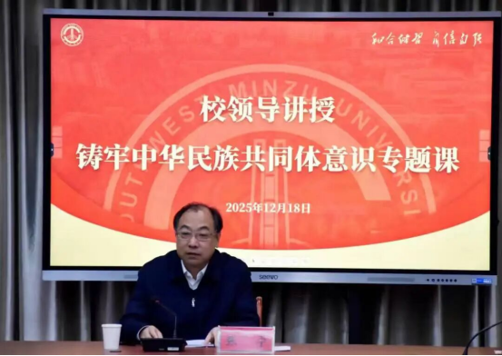 12月18日,校党委副书记、校长王永强走进教室、深入课堂,以“从中国人民伟大的抗日战争中领悟铸牢中华民族共同体意识的深刻内涵”为题,为2024级财务管理和行政管理专业本科生讲授专题思政课。