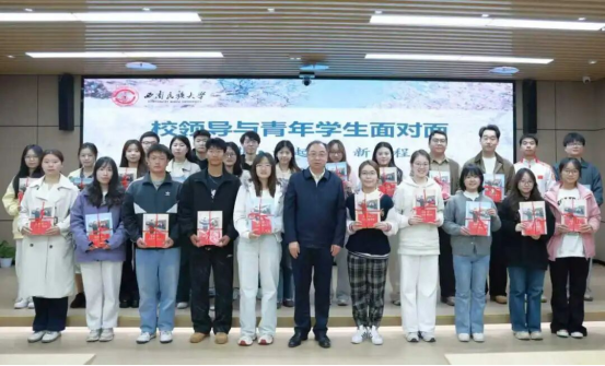 座谈会上,张宁为与会学生代表分别赠送了《习近平与大学生朋友们》书籍和《西南民族大学学生2026年春季学习计划册》,鼓励同学们善规划、勤思考、多读书、快成长,在书香浸润中提升自我、逐梦前行。活动最后,张宁与全体与会学生代表合影留念,定格下校领导与青年学子双向奔赴的温暖瞬间。