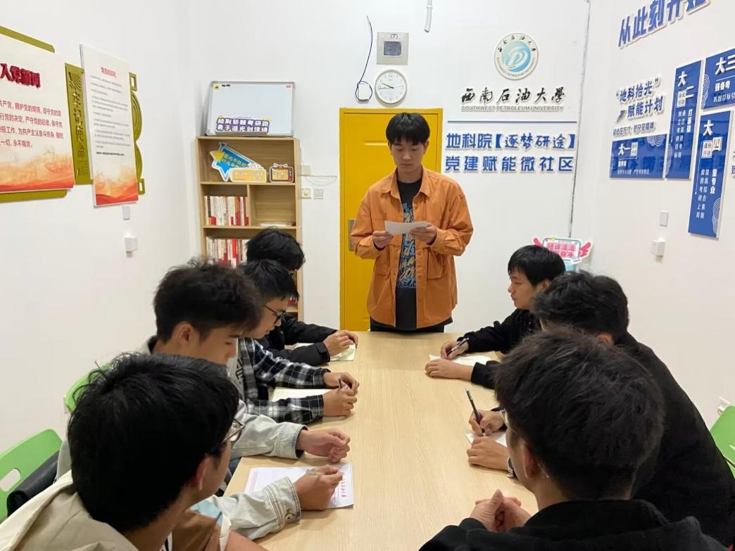 2023年10月地科院党建赋能微社区以宣传写作、青年责任、国学文化为主题,在20栋A区130室开展了宣传思想、青年责任、国学文化为主题的学习思享荟活动,引导青年学生用党的创新理论武装头脑、指导实践。
