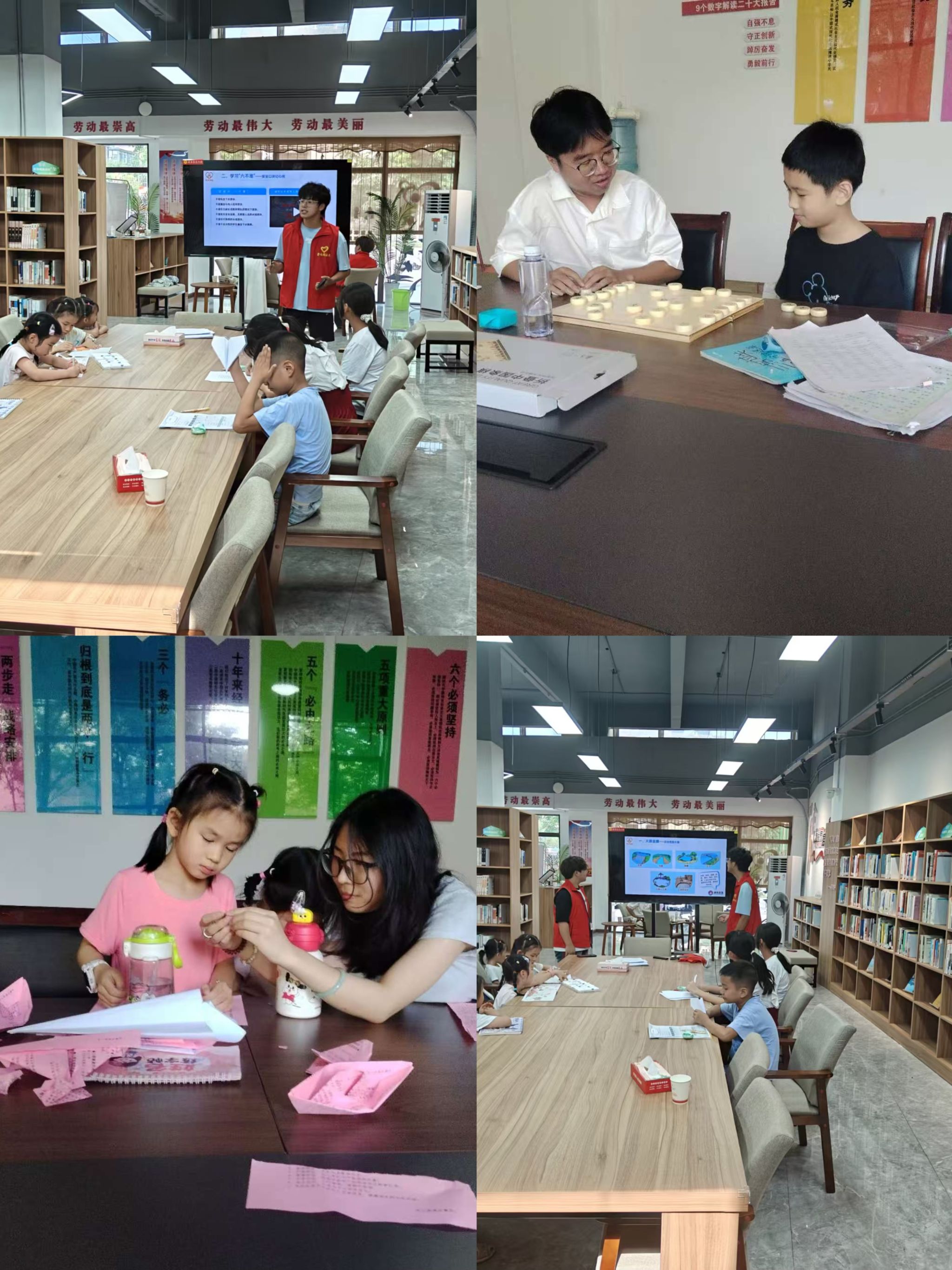 本次托管班课程设计科学丰富,充分体现了“学业辅导”与“素质拓展”并重的理念。每日上午均安排有专注的课业辅导时间,志愿者们耐心细致地为孩子们答疑解惑,培养良好学习习惯。下午则精心策划了涵盖安全教育、体育锻炼、科学探索、人文艺术、红色教育等多元化主题活动:开班首日即开展“暑期防溺水安全教育”,筑牢安全防线;乒乓球、羽毛球、篮球等体育课程,不仅传授基础技能,更通过趣味比赛激发运动热情,强健体魄;数学快问快答竞赛、古诗朗诵、植物科普等课程,巧妙点燃求知火花,启迪科学思维与人文素养;手工折纸、棋类博弈、美术创作则充分释放孩子们的想象力和动手能力。