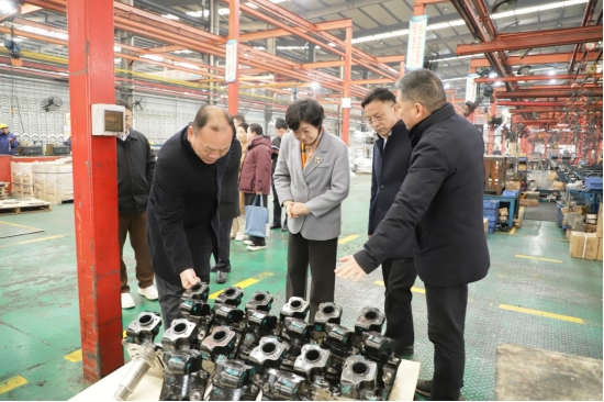 调研组一行首站深入湖北三环车桥有限公司,实地察看谷城制造产业学院学生的实习环境、工作内容与生活保障,并与实习学生亲切交流,鼓励实习生扎根岗位,脚踏实地,留在谷城、建设谷城。