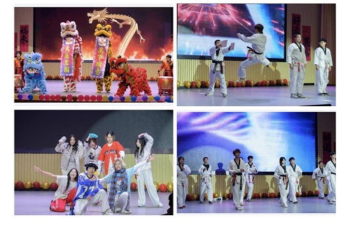 晚会在激情澎湃的《龙拳》中震撼开场,瞬间点燃全场,展现出青春独有的力量与美感。随后,活力四射的流行舞蹈《ZOO》与《Candy》闪亮登场,动感的节奏与整齐的舞步,淋漓尽致地演绎出学子们的朝气与风采。