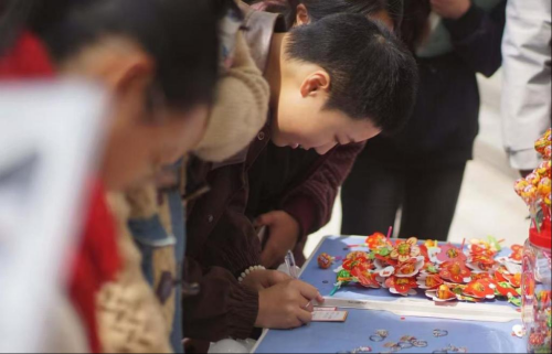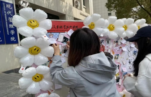 活动现场,参与的同学们热情高涨。大家可以自由挑选心仪的“爱自己卡片”,并按照卡片上的要求完成行动,在实践中践行自我关爱;也可以拿起便利贴,写下自己心中最想实现的爱自己方式,认真贴在活动宣传板上,用文字传递对自我的期许。每一位参与活动的同学,都能获得一根太阳花棒棒糖,甜蜜的糖果为大家的校园生活增添一份温馨与美好,也让“爱自己”的理念以更轻松的方式深入人心。