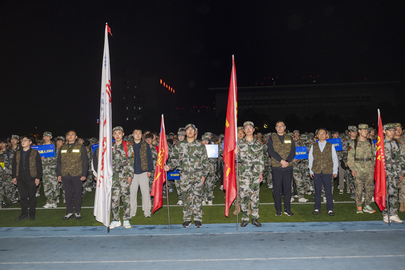 号令如山,青春列阵启征程。23时整,校园战旗猎猎,集结号划破夜空,2025级新生军训团7个营、34个连迅速完成紧急集结、清点人数、整队检查,动作规范、秩序井然。跟随鲍桂楠校长的号令,全体参训师生以四路纵队稳步开拔,迷彩奔涌,步履铿锵,向九里山挺进。