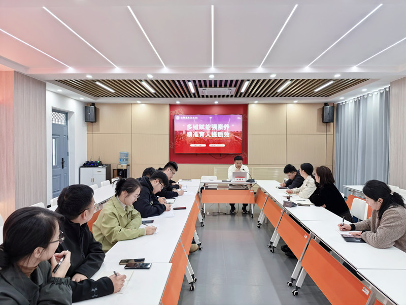 赵鹏飞老师以“多维赋能强素养精准育人提质效”为题,分享了其在全省高职院校辅导员骨干培训班的学习收获。他首先回顾了培训中关于党建引领、队伍建设、精准思政、网络舆情应对等核心模块的专题内容。结合日常工作实际,他提出新时代辅导员要坚定理想理念、掌握科学方法、强化精准思维,锤炼“坐下能写、站起能讲、俯身能干”的过硬本领,在永无止境的育人道路上不断提升思政引领力、职业胜任力,努力成长为一名心怀教育家精神、深耕育人一线的专业化辅导员。
