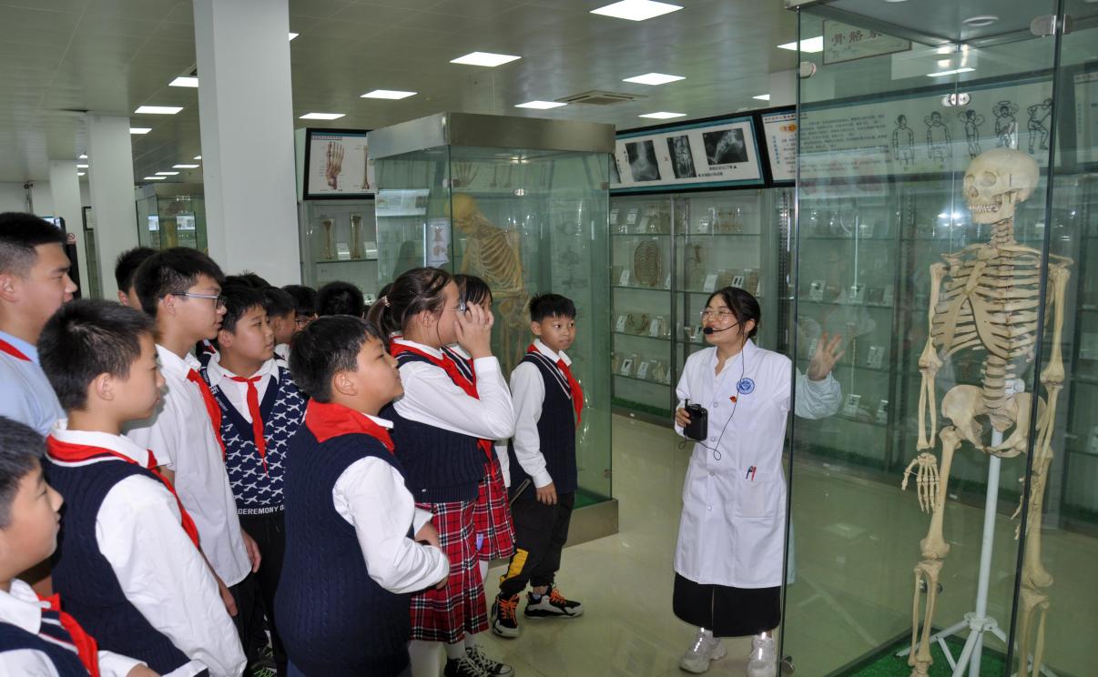 徐州医科大学生命科学馆作为区域唯一的综合性医学实践教育教学基地,以开放的姿态和创新的精神,紧扣大中小学生成长需求,发挥地方、学校资源的优势互补,延伸生命科学馆育人职能,将医学生第一课堂的学习成果、“大体老师”的教育教学资源、丰富思政教育元素融入大中小学生实践教育的第二课堂。
