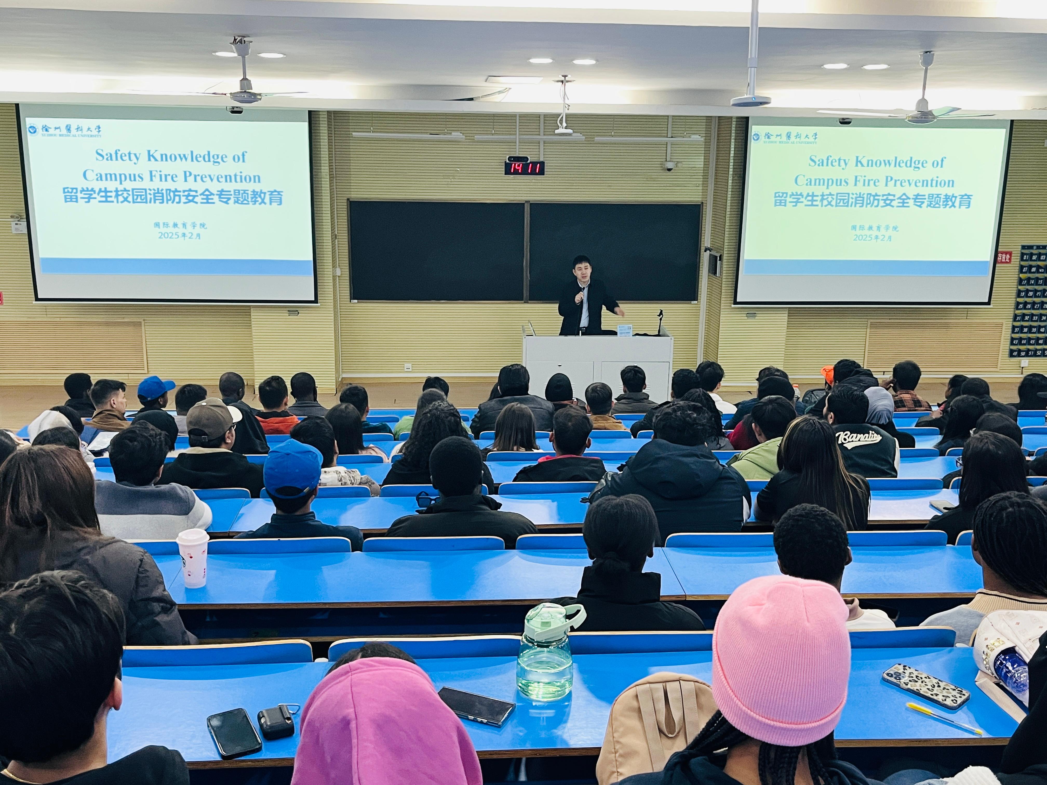 为进一步增强留学生消防安全意识,加深留学生消防安全知识,保障平安校园建设,国际教育学院针对全体留学生开展以“消防安全知识”为主题的专题学习教育。国际教育学院(国际合作与交流处)直属党支部书记王俊做讲座,全体辅导员和留学生参加。