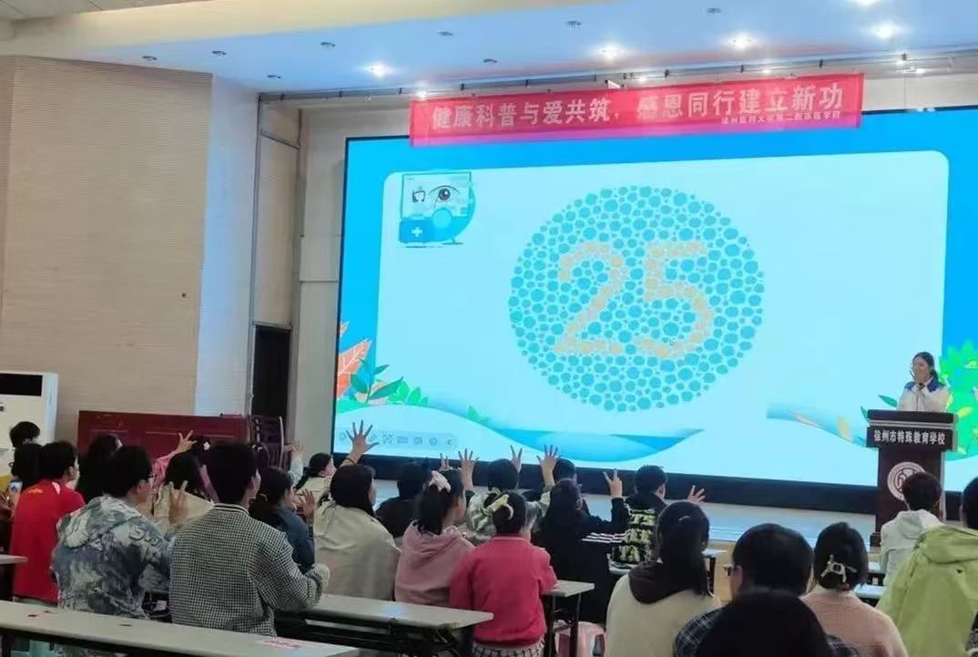 5月24日,为保障视力健康知识惠及每一位儿童,宣讲团走进徐州市特殊教育学校。成员们创新采用手语翻译、触觉模型演示等适配方式,为特殊儿童讲解护眼知识,确保信息无障碍传递。特教的孩子们表示,这些量身定制的关爱,让他们学习了保护视力的重要性,也感受到温暖守护。