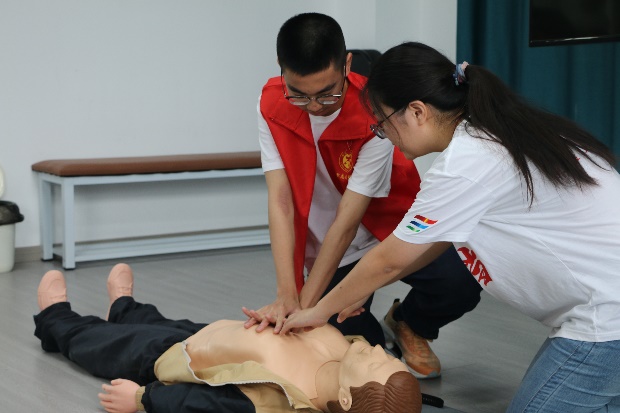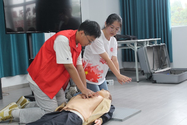 “久久防艾”实践团联合盐城市尚睿志愿服务队为中小学生开展急救知识讲座,实践团成员通过“模拟人”演示完整CPR流程,重点强调急救过程中防护设备使用与职业暴露预防。50余名学生在指导下完成胸外按压、人工呼吸的实操考核,同步掌握急救包中防护面罩、止血纱布的正确使用方法,实现防艾知识与急救技能的双重提升。
