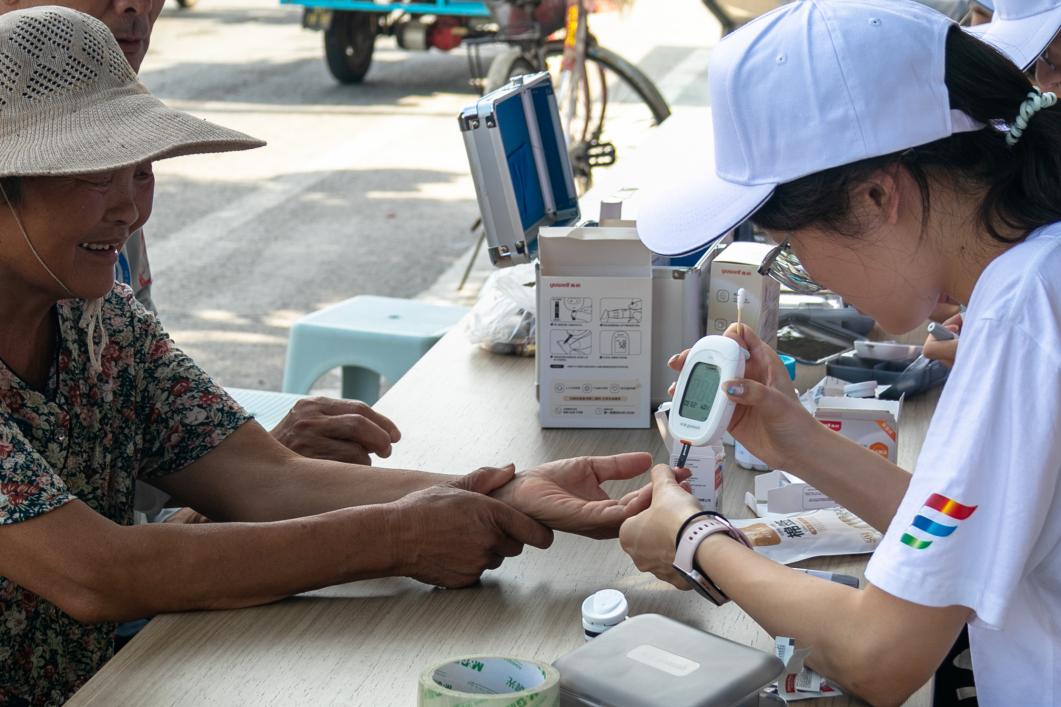 为帮助老年群体及时掌握自身基础健康状况,实践团为老年人开展血压、血糖免费检测服务,用DeepSeek、豆包等AI技术为老人定制专属建议。志愿者们细致操作仪器,动作轻柔地为老人绑好袖带、采集血样,等待数据的间隙,细细询问老人们平时是否常吃降压药、血糖波动时有没有头晕症状:“您这血压稍微有点高,平时做菜少放点盐,晚上别熬夜。”“空腹血糖控制得不错,记得饭后散散步。”温和亲切的语言让老人们卸下拘谨,露出真心的笑容。
