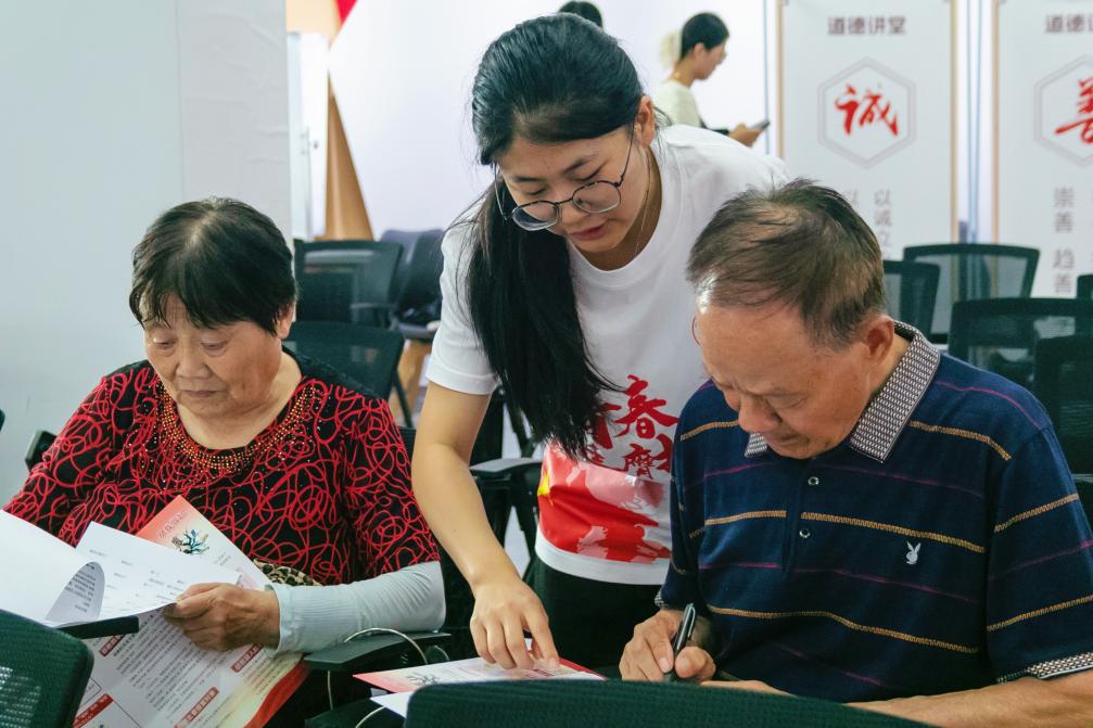 “青禾医栈”实践团前往多个党群中心与乡镇文体站,面向退休党员、乡村留守老人等群体开展调研,并围绕“互联网+医疗”健康新模式进行了科普宣讲。“什么是网上门诊?”“怎么实现线上就医?”“如何通过互联网预约挂号?”大学生志愿者们通过“微课堂+现场互动”的教学形式,详细讲解了智慧医疗的核心功能及其带来的便利,赢得了群众的信赖。
