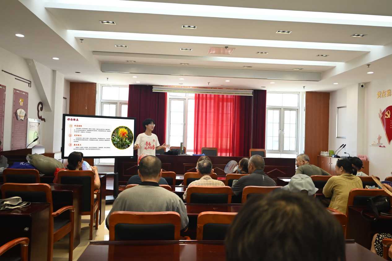 在专题宣讲会上,团队运用可视化数据模型,揭示传统育苗周期长、损耗高的症结。针对土壤酸化等痛点,现场演示定制基质配比与温控催芽技术,将育苗周期缩短30%。通过“你问我答”环节,将光谱检测、抗病育种等专业知识转化为“土配方”“顺口溜”,发放技术手册150余份。药农李大爷感慨:“大学生教的控温育苗法,比老法子省心又出苗!”