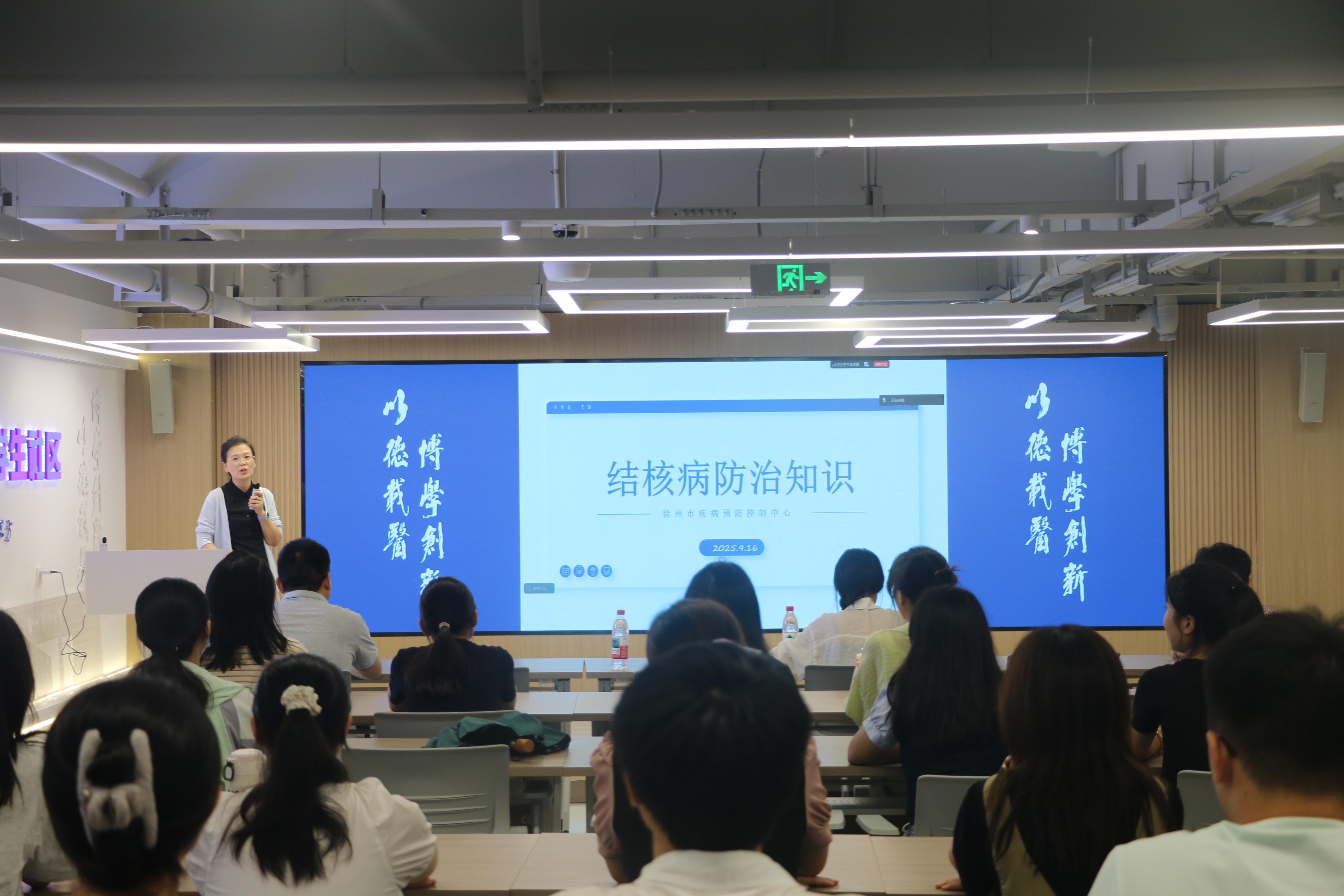 为提升新生传染病防控意识,筑牢校园健康防线,9月16日晚,公共卫生学院联合徐州市疾病预防控制中心、徐州市妇幼保健院,在我校“医+”一站式学生社区至成多功能厅举办“健康启航·医路同行”2025级新生多病共防科普活动。本次活动宣讲聚焦艾滋病、肺结核、基孔肯亚热、登革热及HPV感染五大重点传染病,为我校新生带来生动的“开学健康第一课”,来自全校12个学院的80余名本科新生代表参加本次活动。