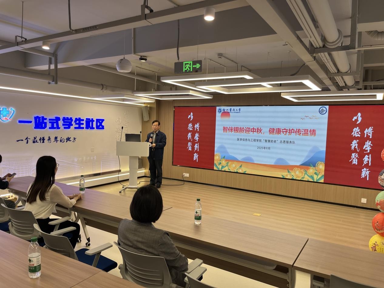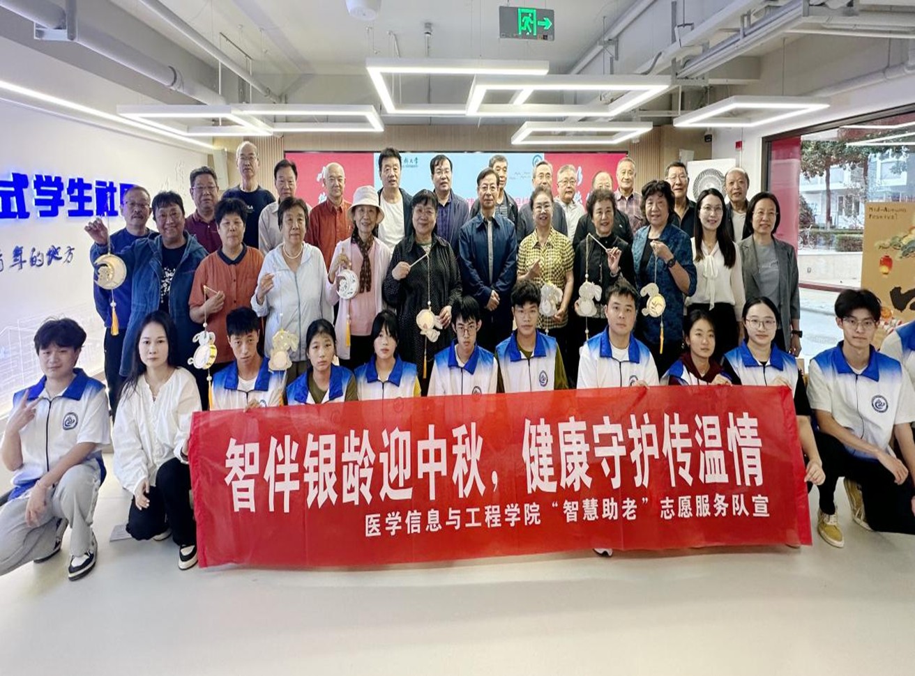 9月25日,医学信息与工程学院“智慧助老”志愿服务队在一站式学生社区与校离退办联合开展“智伴银龄迎中秋,健康守护传温情”志愿服务主题活动。校关工委副主任赵世鸿,校离退办、医学信息与工程学院领导及部分退休教师参加活动。