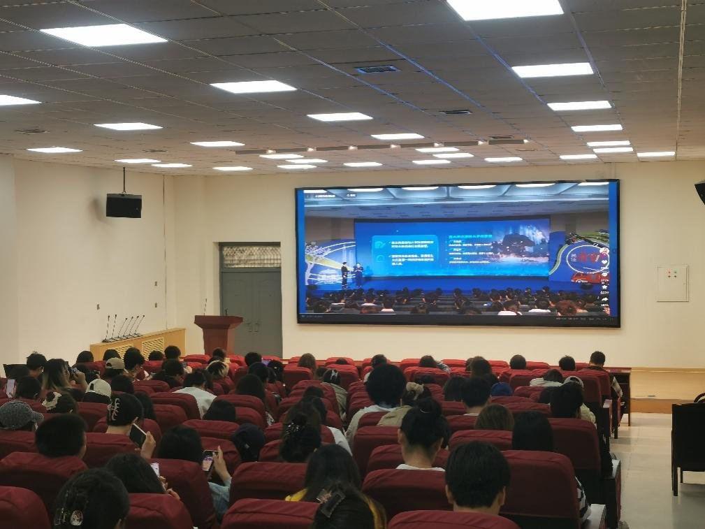 师生认真观看消防公开课
