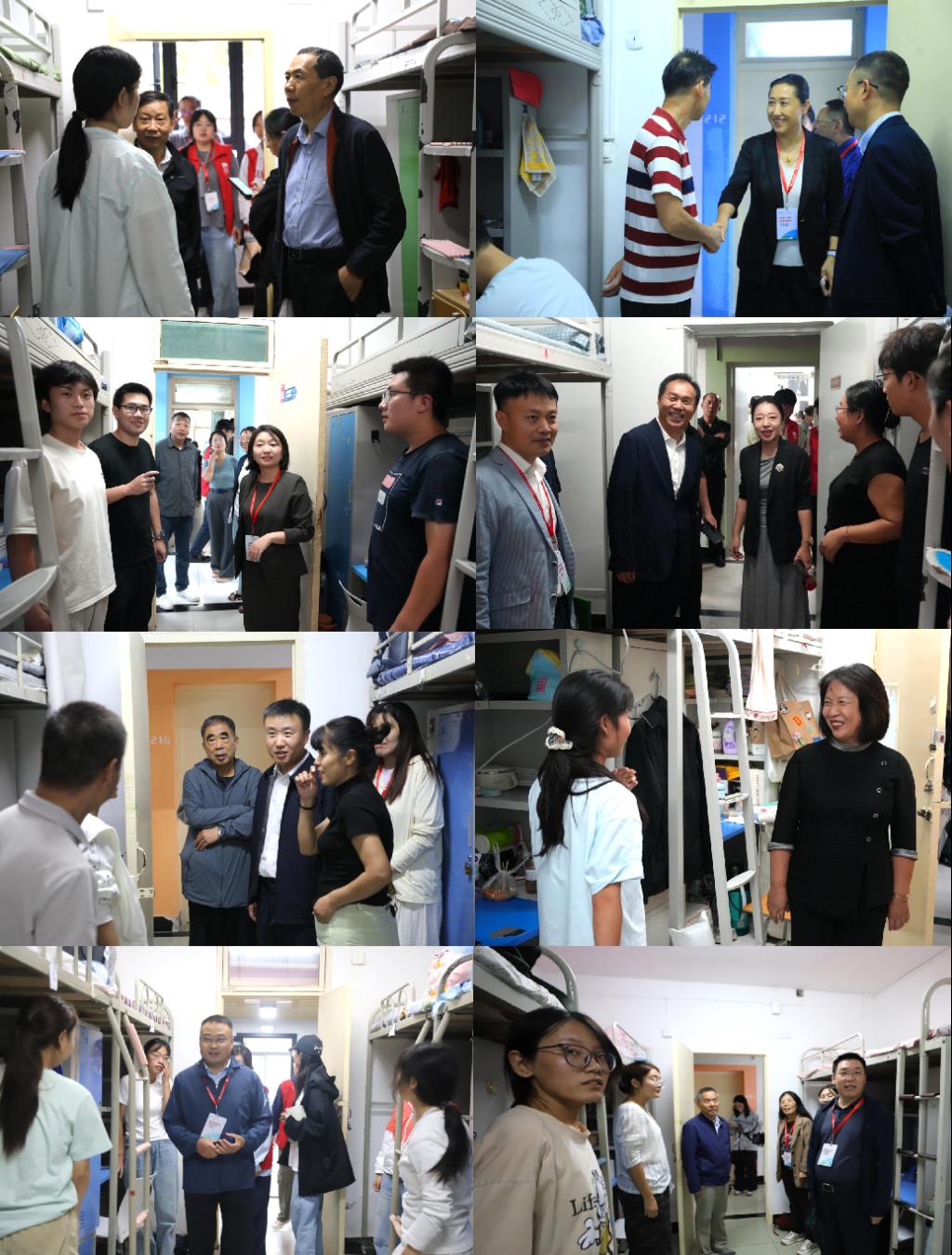 在新生宿舍走访过程中,校领导们关切查看了住宿环境与设施条件,并就住宿条件、餐饮服务、环境设施等后勤保障工作的满意度进行深入询问,细致了解大家对校园生活的适应情况。他们与来自五湖四海的学生分享了学校的发展历程、办学特色和学科优势,勉励同学们在大学四年里珍惜时光、刻苦学习、坚持锻炼,不断提升自身综合能力,以饱满的热情和积极的心态投入到全新的学习和生活中,用实际行动书写青春篇章,在创新成长为既怀揣理想又脚踏实地的新时代青年。