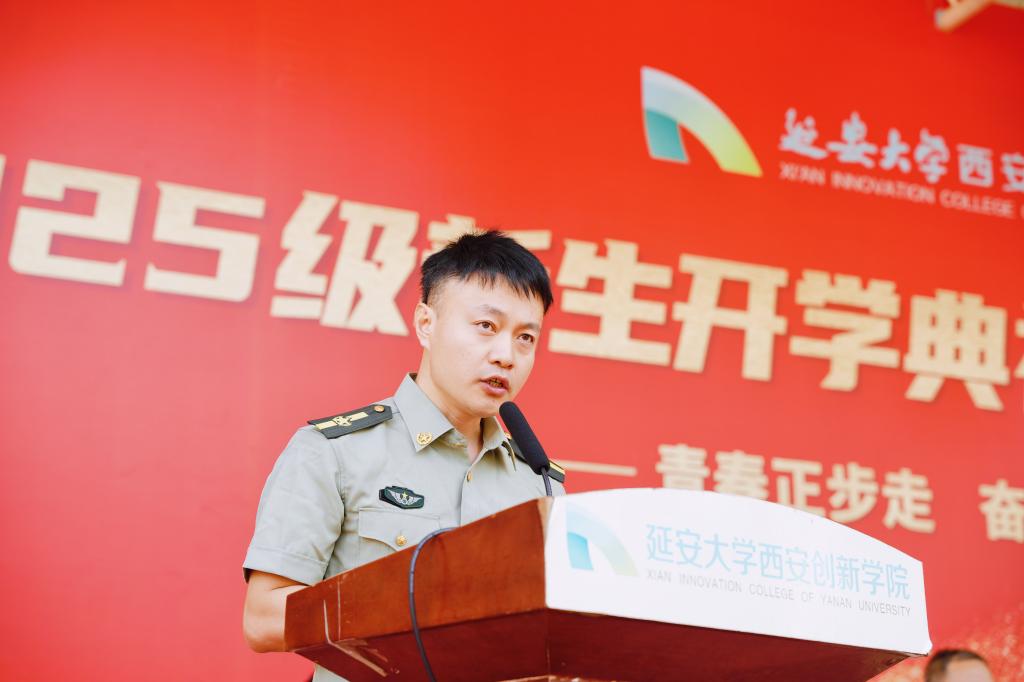 军训教官代表刘国豪在发言中表示,军训是锻造意志、培养品质的宝贵机会,全体教官将以饱满热情、过硬本领和高度责任感,科学实训、严格自律,确保安全高效完成军训任务。他鼓励同学们全心投入训练,以热血致敬青春,用奋斗书写未来,以更坚毅的品格迎接大学与人生的新挑战。