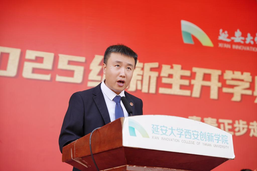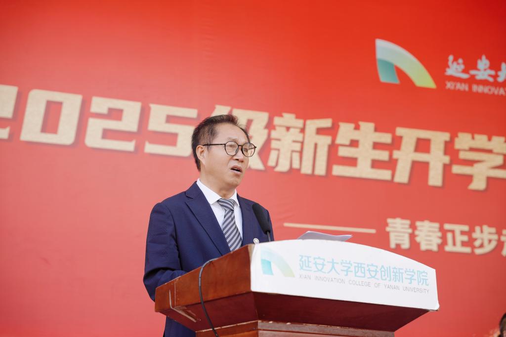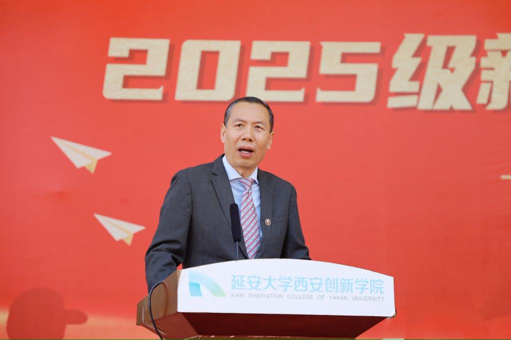 校长崔海潮作了题为《莫问来路,试看前程,立志从创新走向成功》的致辞。他首先代表学校对2025级新生的到来表示热烈欢迎和诚挚祝贺。他指出,无论过往如何,踏入大学即是新的胜利,鼓励大家认清现实、明确目标,将个人成长融入时代发展,特别强调在人工智能迅猛发展的背景下,要主动学习新知识、拥抱新技术,避免被时代淘汰。