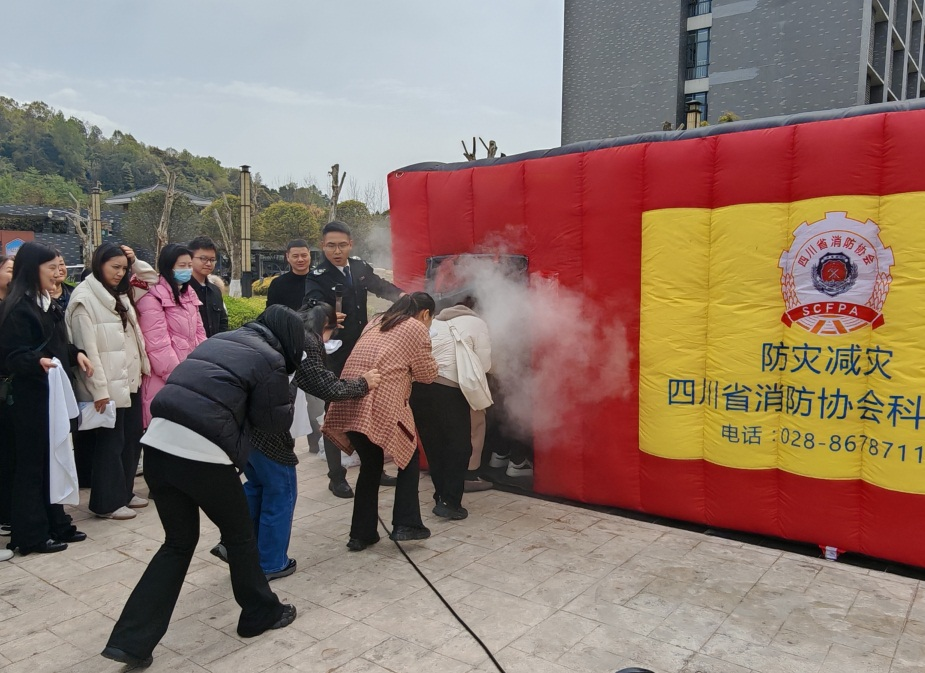理论培训结束后,学校组织开展了模拟火灾场景的逃生帐篷体验及灭火演练。在逃生帐篷体验区,参训人员有序进入模拟浓烟环境,运用所学逃生技巧顺利完成疏散;灭火演练环节中,教职工分组操作灭火器扑灭火源,切实掌握初期火灾处置技能。整场活动组织有序,参与人员反响热烈。
