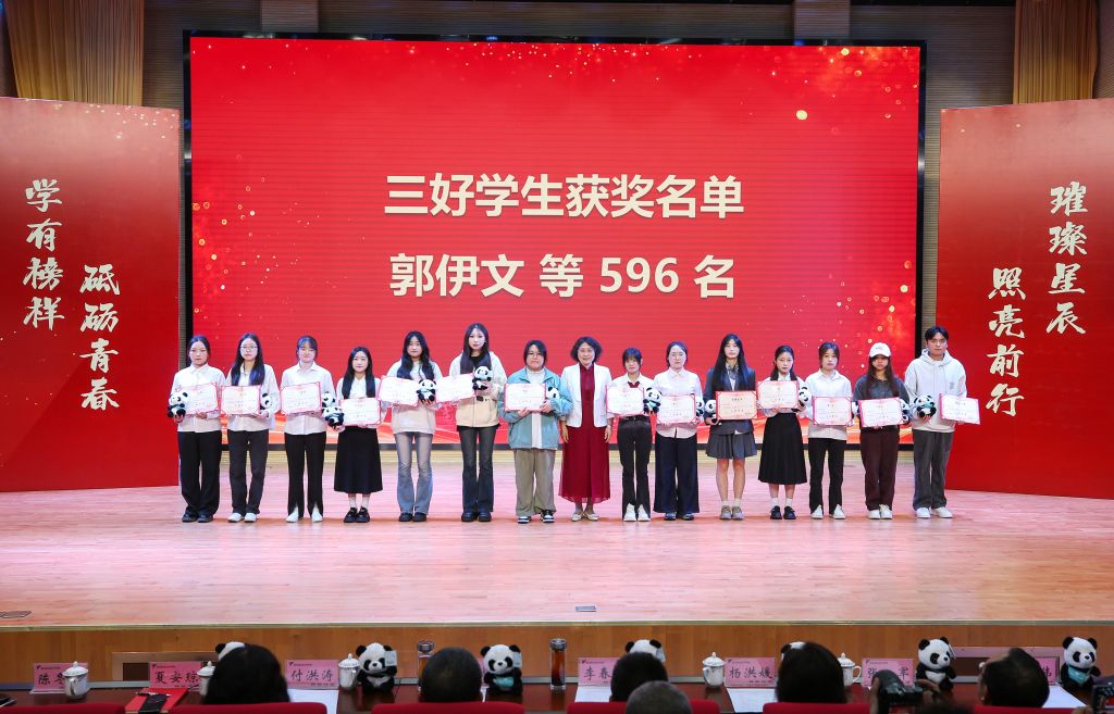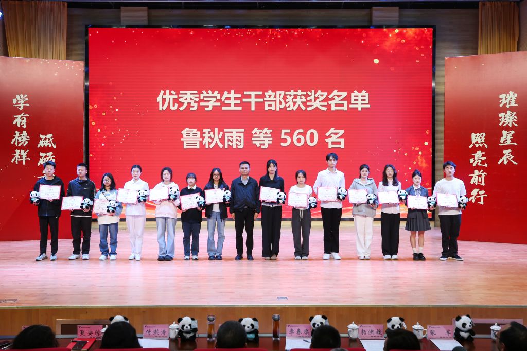 4月29日,学校以“笃志求精·与榜样同行”为主题在经开区校区聚雅厅举行2023-2024学年度学生表彰大会,85个先进集体,3400余名优秀学生受到表彰。学校党委书记李春模,党委副书记、校长黄诚,党委副书记杨洪媛,党委常委、副校长付洪涛,党委常委、纪委书记张军,党委常委、工会主席、宣传统战部部长夏安琼,党委常委、发展规划处处长梁大伟出席会议。大会由党委常委、副校长陈冬冬主持。