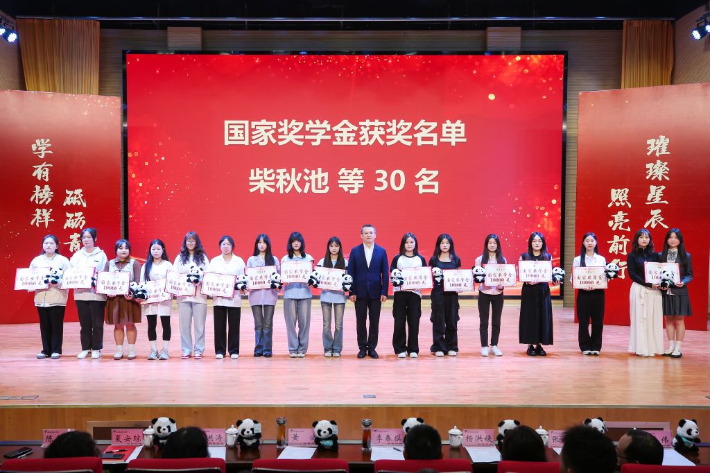 会上,李春模向受到表彰的先进集体和优秀个人表示热烈祝贺,向辛勤耕耘在教育教学、管理服务一线的广大教师、辅导员致以崇高敬意和衷心感谢。他系统总结过去一年学校在落实立德树人根本任务、构建高质量育人体系方面取得的显著成效。他对全体学子提出三点殷切期望:一是希望同学们以“国之大者”铸魂,让理想信念在奋斗中升华,始终与祖国共命运、与人民同呼吸、与时代同进步,将个人追求和理想同国家大局、社会需要、人民利益有机统一起来,争做心怀家国的追梦者;二是希望同学们以“硬核本领”筑基,让成长脚步在奋斗中铿锵,树立梦想从学习开始、事业靠本领成就的观念,注重培养创新和复合能力,彻底打破学科边界,培养跨领域思维,争做知行合一的实干家;三是希望同学们以“品德修为”立本,让青春底色在奋斗中纯净,以社会主义核心价值观为标尺,传承红色文化,弘扬中华文明,始终保持积极的人生态度、良好的道德品质、健康的生活情趣,自觉做诚信学风、感恩社会的践行者、奉献精神的传播者,努力成长为有理想、有道德、有文化、有纪律的新时代青年,争做崇德向善的引领者。