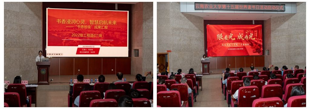 在书香班级汇报环节,由建筑工程学院2022级工程造价1班、马克思主义学院2022级马克思主义理论本科班分别介绍了书香班级建设情况及取得的成效。桂明英副院长为图书馆、学生处、建筑工程学院和人文社会科学学院共建书香学院(试点)授牌,推动书香校园建设工作迈上新台阶。