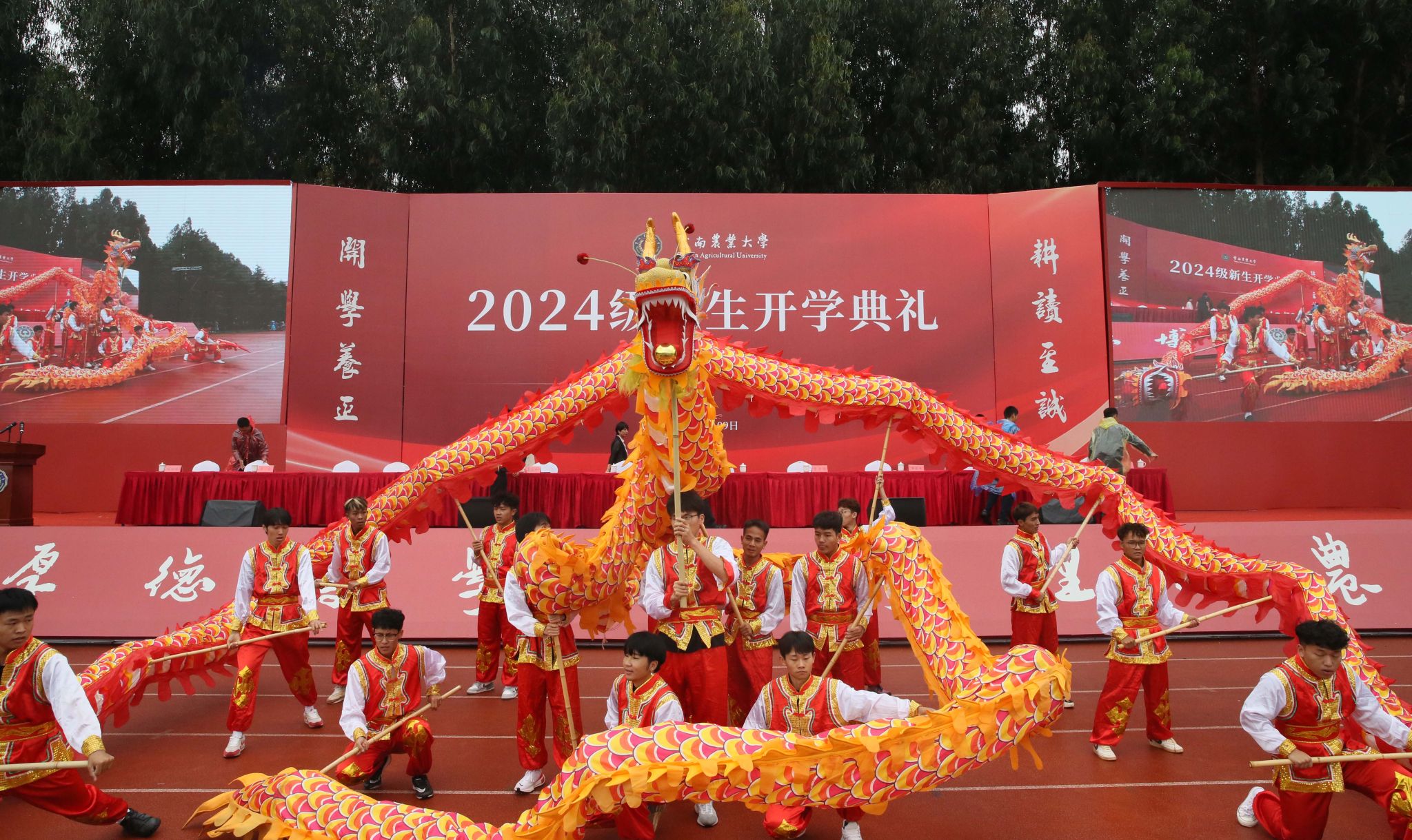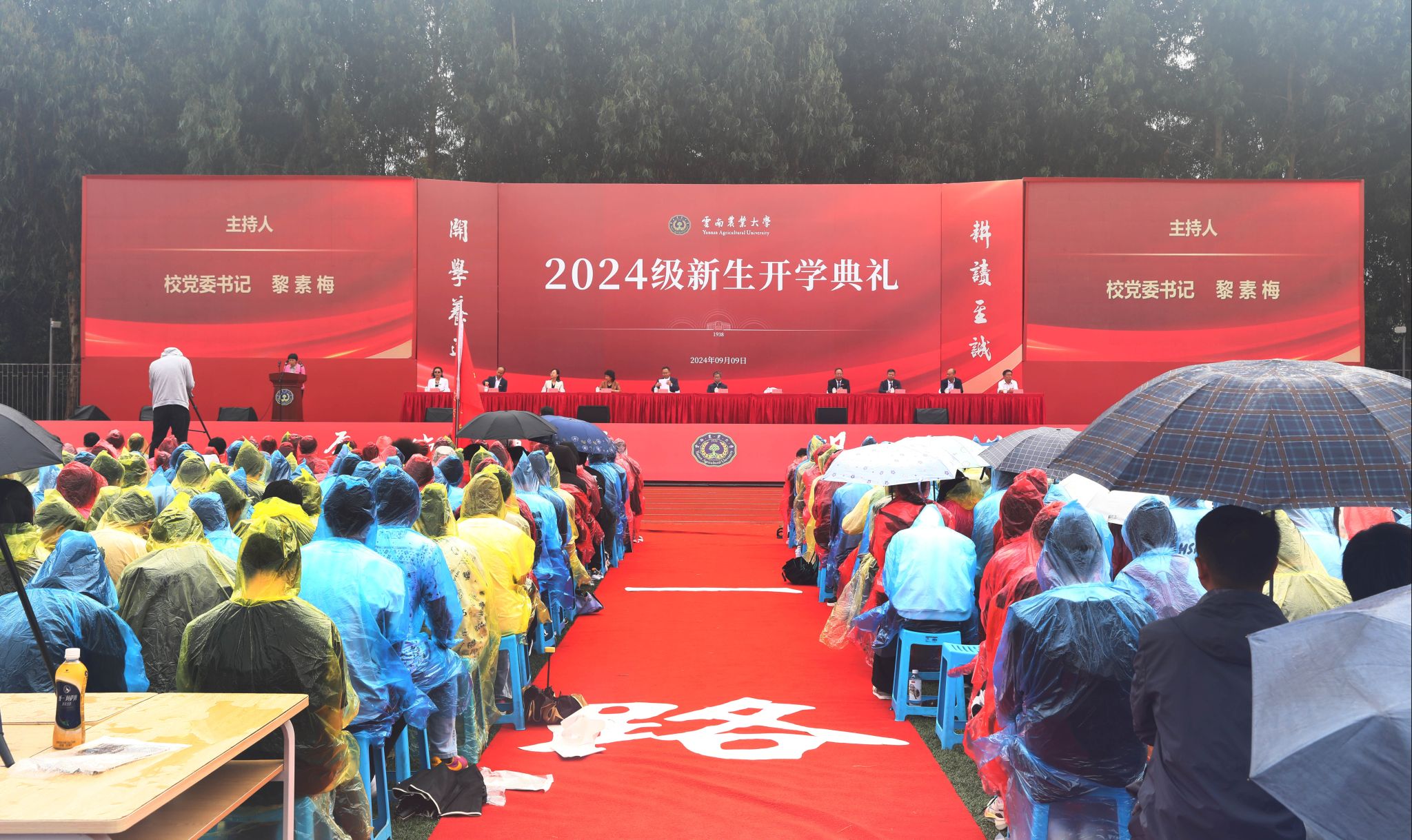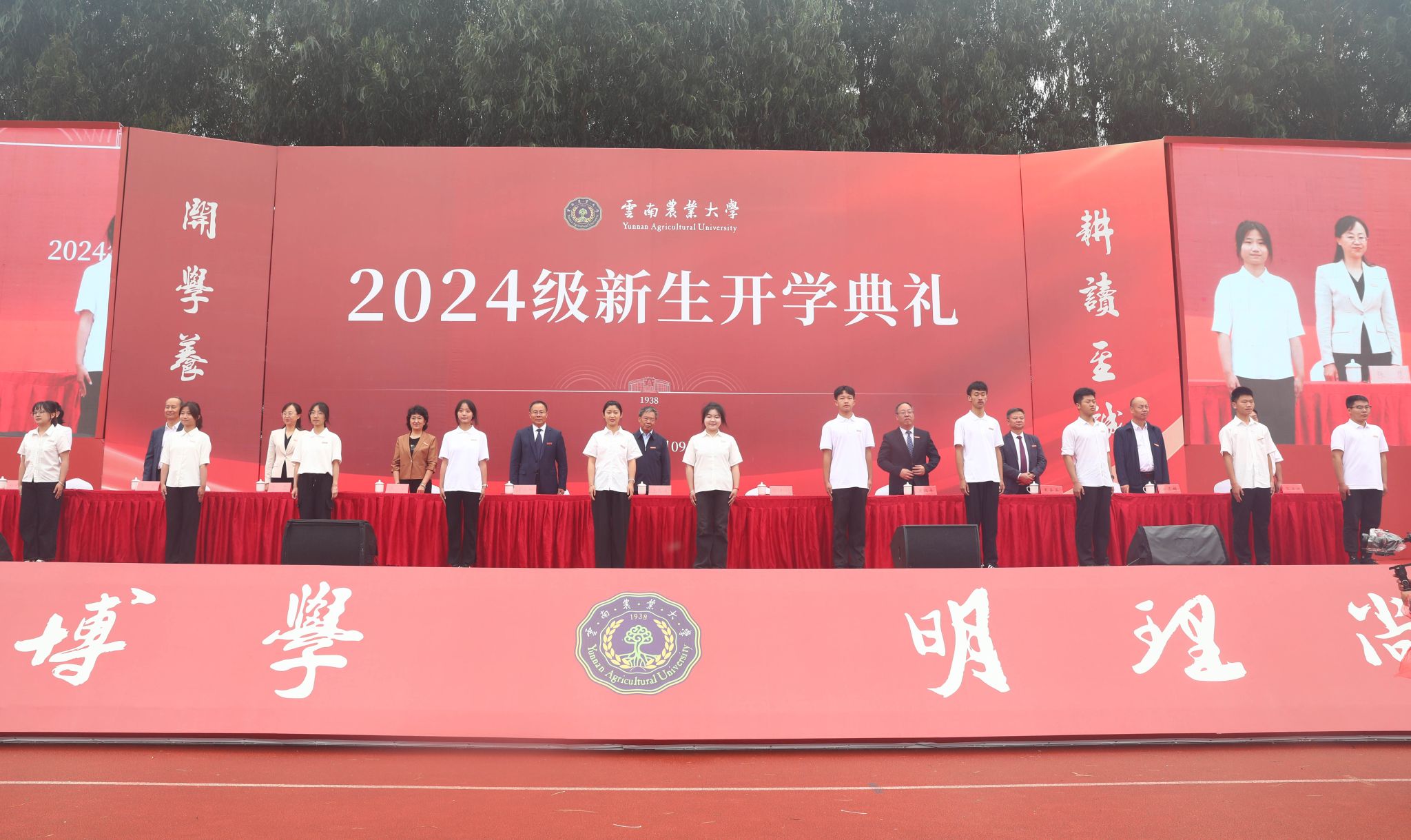 在庄严的国歌声中,学校2024级新生开学典礼拉开序幕。校领导为新生代表佩戴校徽,向新生致以诚挚祝贺与热烈欢迎,并叮嘱同学们要记住身份、珍惜荣誉、担起责任,牢记“开学养正,耕读至诚”的大学精神,“厚德博学,明理尚农”的校训,传承好云农精神。